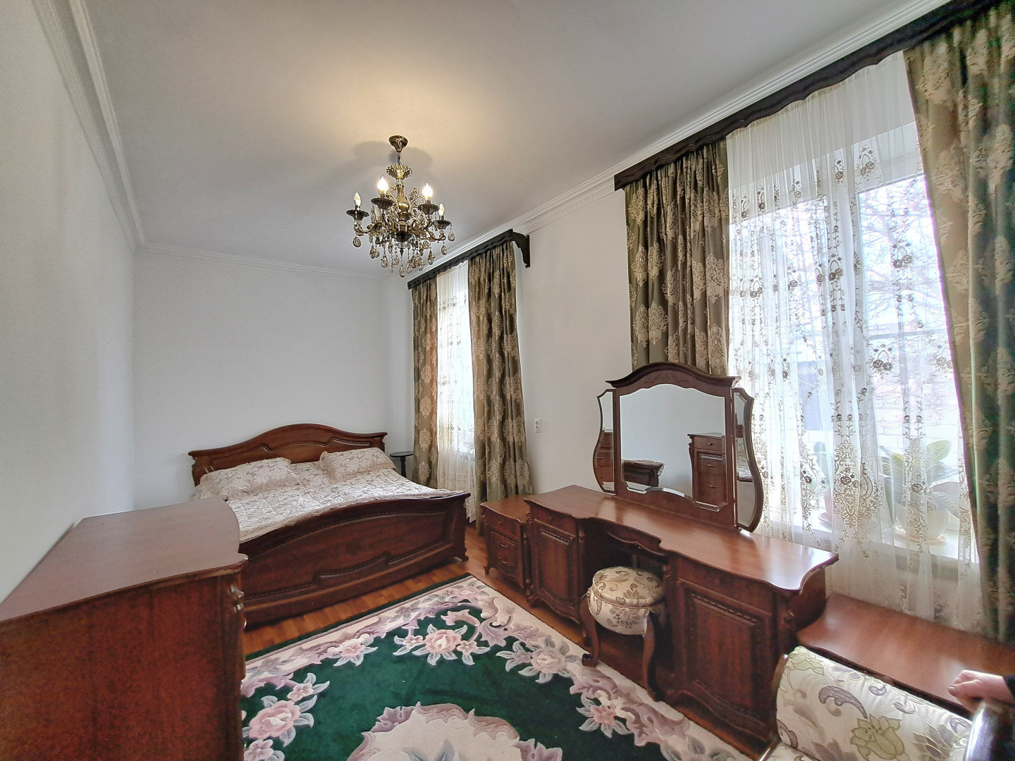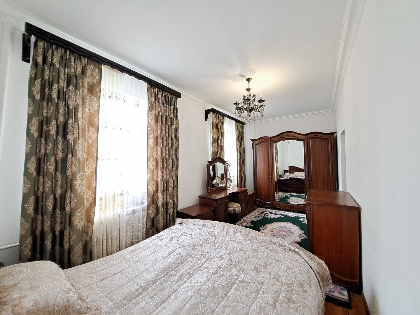 Общая площадь дома 200 м2, площадь участка 4 сот Дом двухэтажный, состоит из 6 комнат: 4 спальные комнаты