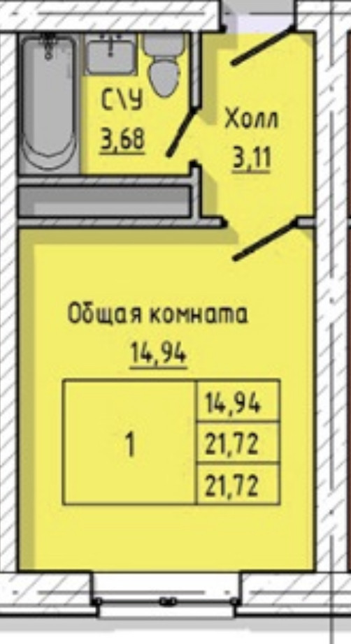 Продам квартиру-студию 21.7 м.кв.