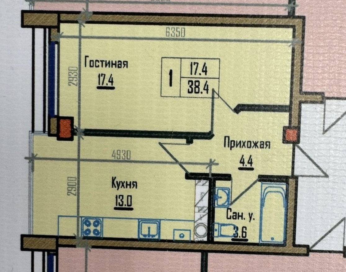 Продам однокомнатную квартиру 38.4 м.кв.
